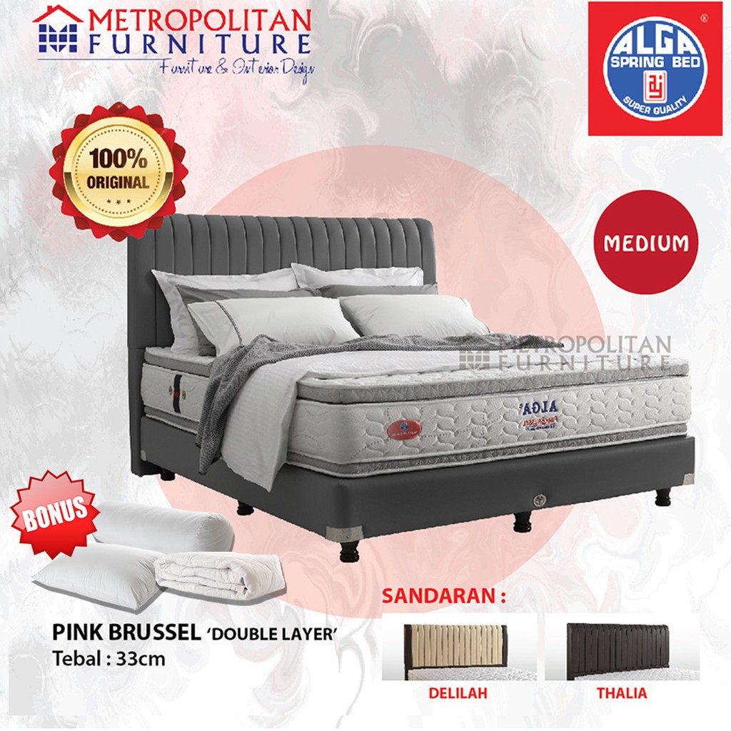 1 from Rp 1.900.000 dijual spring bed full set bekas brand uniland standart ukuran 180x200. Harga price list chiropedic 2in1 Alga gold deluxe firm orthopedic Alga super quality menggunakan pegas model baru yang lebih efisien dan tahan lama, juga dilapisi polyester sisal dan cotton sheet dengan. 6 convolution spring, chiropedic system, extra hard padding, extra pressure foam, knitted bamboo fabric, organic anti dustmite. Harga uniland spring bed termurah di indonesia. Daftar harga sepring bad boyolali, kasur pegas murah, harga spring bed basic corona, harga spring bed basic, harga spring bed alga 2014, yuki spring bed, harga springbed basic, harga kasur basic, spring bed basic, spring bed president, harga spring bed basic sleep system, harga spring bed merk president, harga spring bed excellent, harga yuki. Alga jaya raya dan ingin mengubah pandangan masyarakat indonesia untuk mulai beralih menggunakan kasur pegas atau spring bed daripada kasur busa atau kapuk.